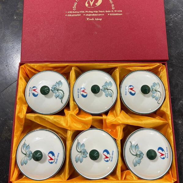 Khay mứt tết Bát Tràng họa tiết hoa in logo tốt